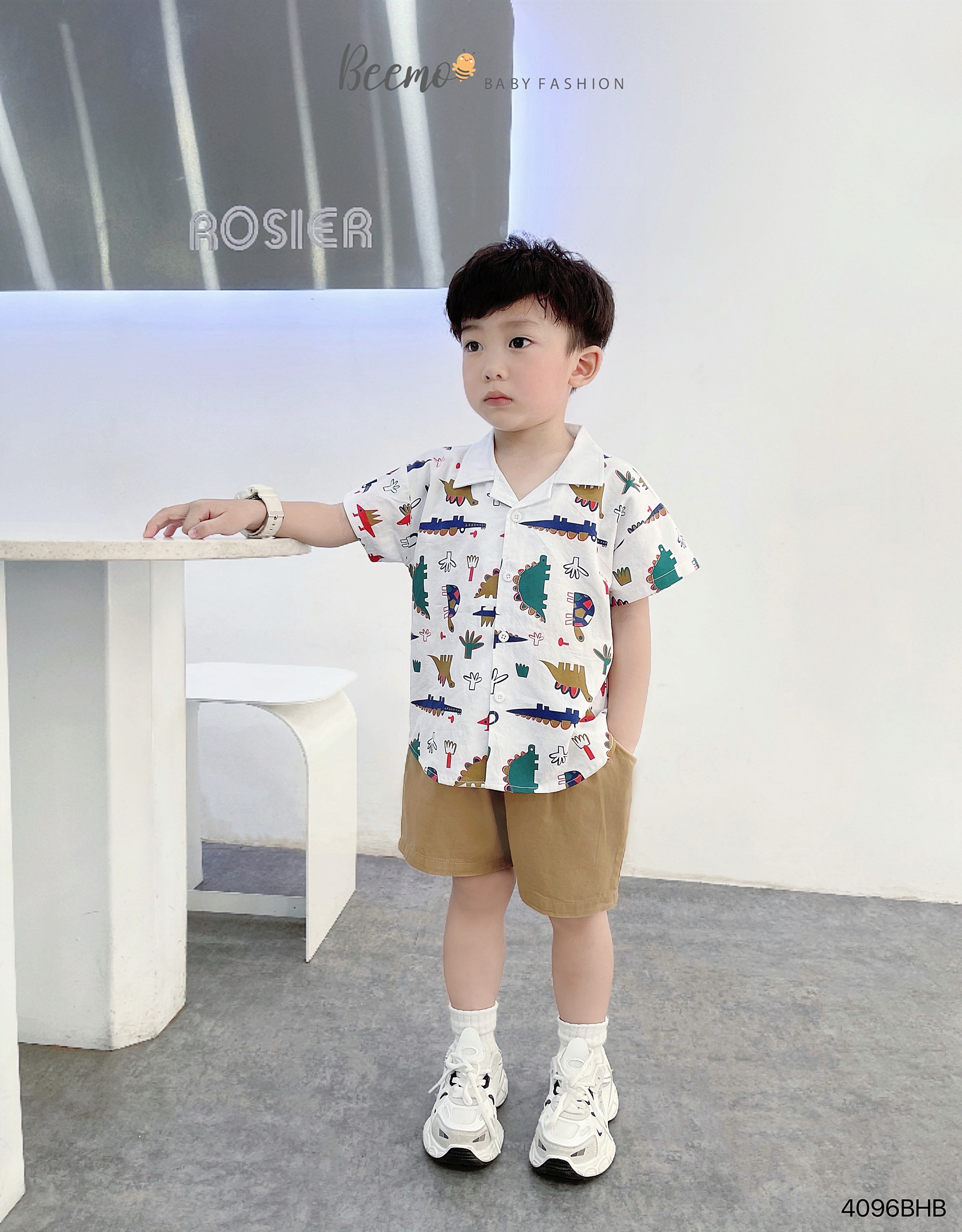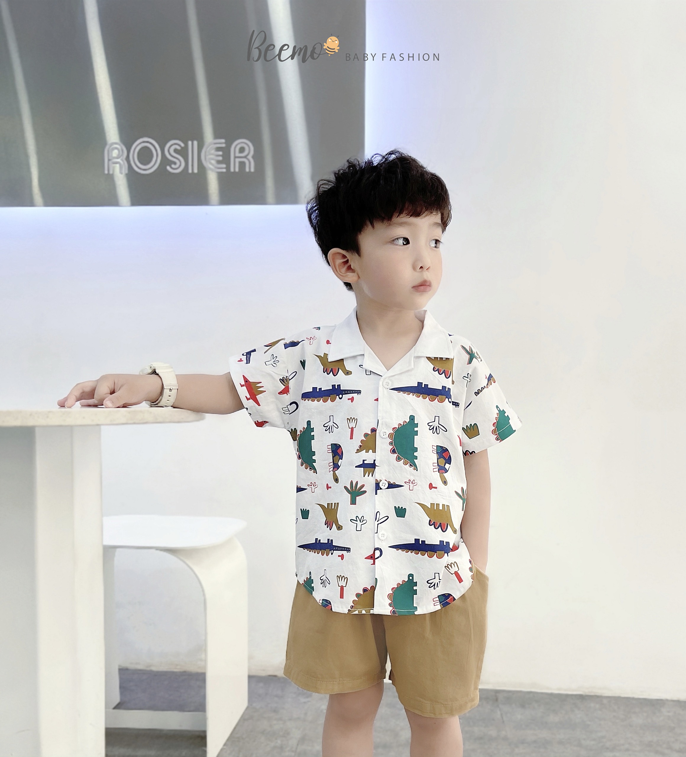 🧀 Thiết kế áo sơ mi cổ ve hình in sắc nét, trendy, quần shorts kaki lưng thun co giãn